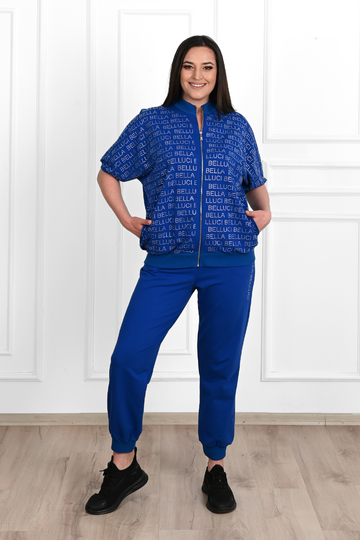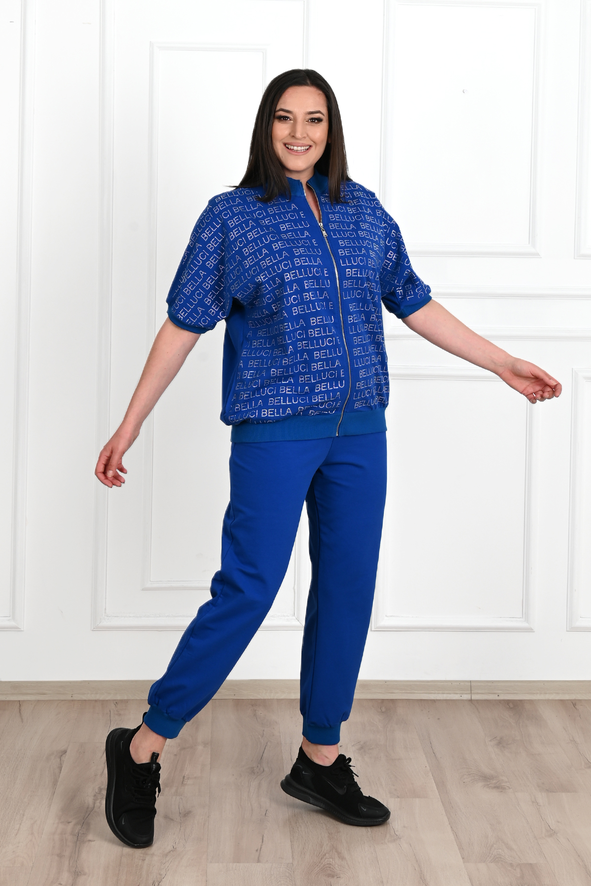 Women’s Glitter Detailed Short Sleeve Plus Size Tracksuit Set 3687-23