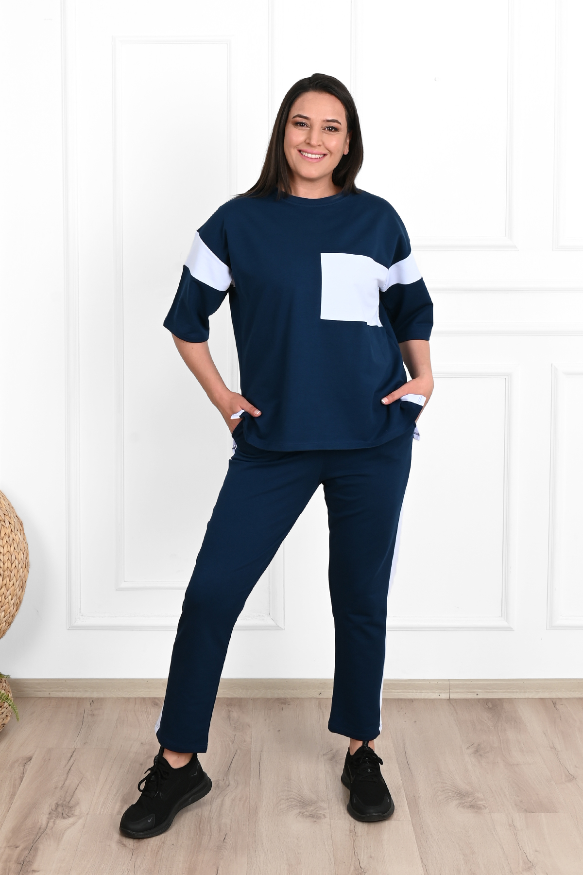 Women’s Striped Detailed Plus Size Tracksuit Set 3754-23
