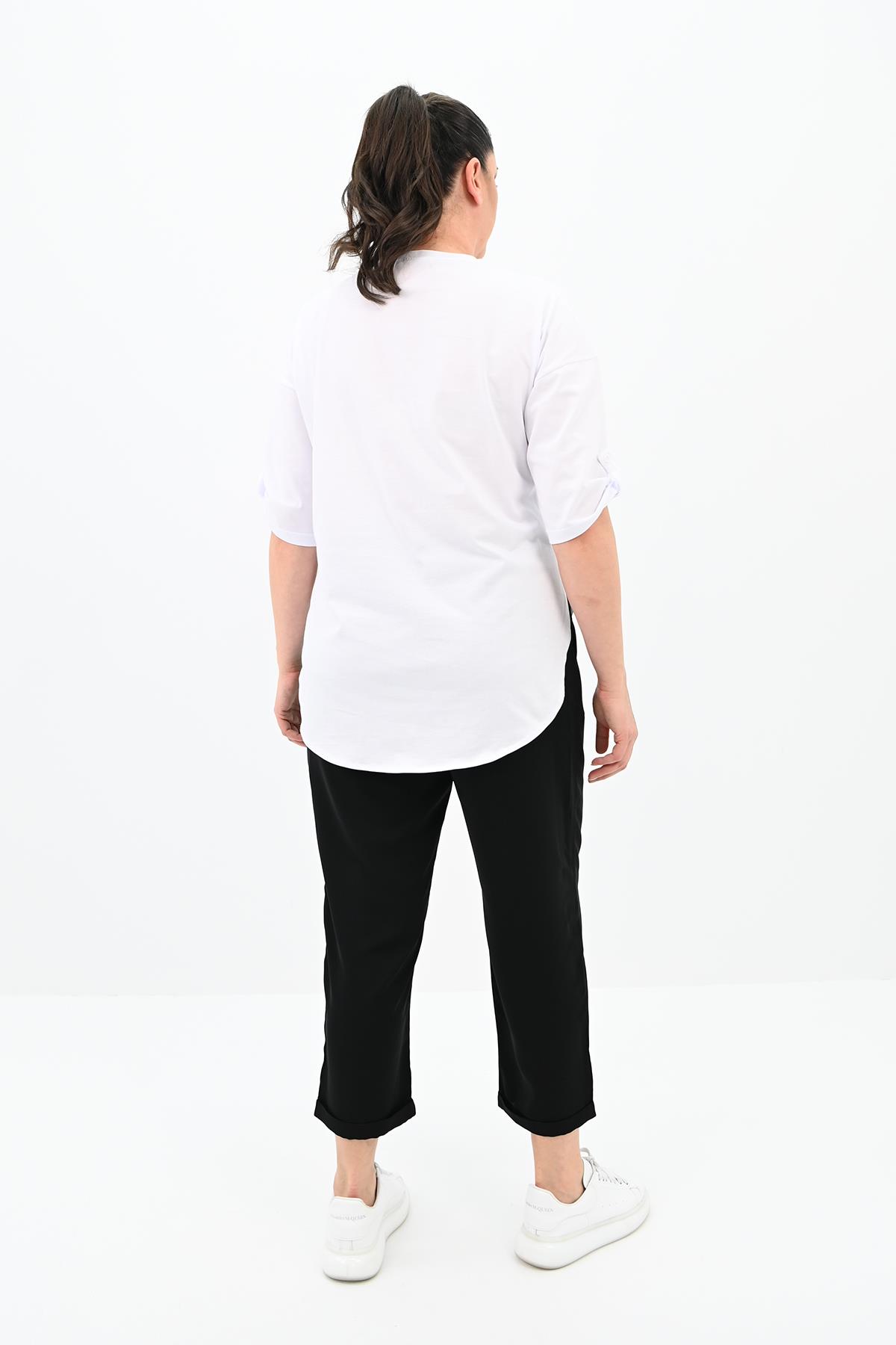 Şıklık ve rahatlık arayan kadınlar için ideal bir seçim olan Kadın Büyük Beden Oversize T-shirt Takımı, 42-50 bedene uyumludur. Bu takım, özel olarak tasarlanmış oversize kalıbıyla hem şıklığı hem de konforu bir araya getiriyor. Yüksek bel ve cep detay mevcuttur. Polyester kumaştır. Manken ’in üzerindeki beden 44 bedendir. (Bedenler arası +/- 2cm fark olmaktadır.)